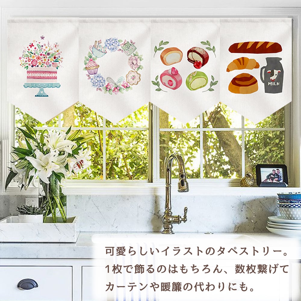 スイーツ パン タペストリー のれん 目隠し パステル 喫茶店 可愛い インテリア 小物 お洒落 ナチュラル 北欧 カフェ レストラン ベーカリー 映え 飲食 備品 内装 YKS-0056