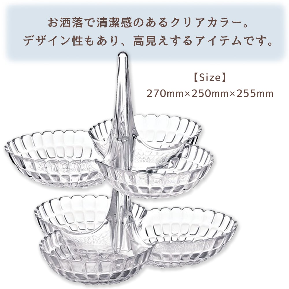 クリア ディスプレイスタンド 2段 オードブル 段差 陳列 複数 インテリア 華やか カフェ ケーキ お菓子 洋菓子 飲食 備品 お洒落 シンプル 上品 イタリア製 YKS-0106